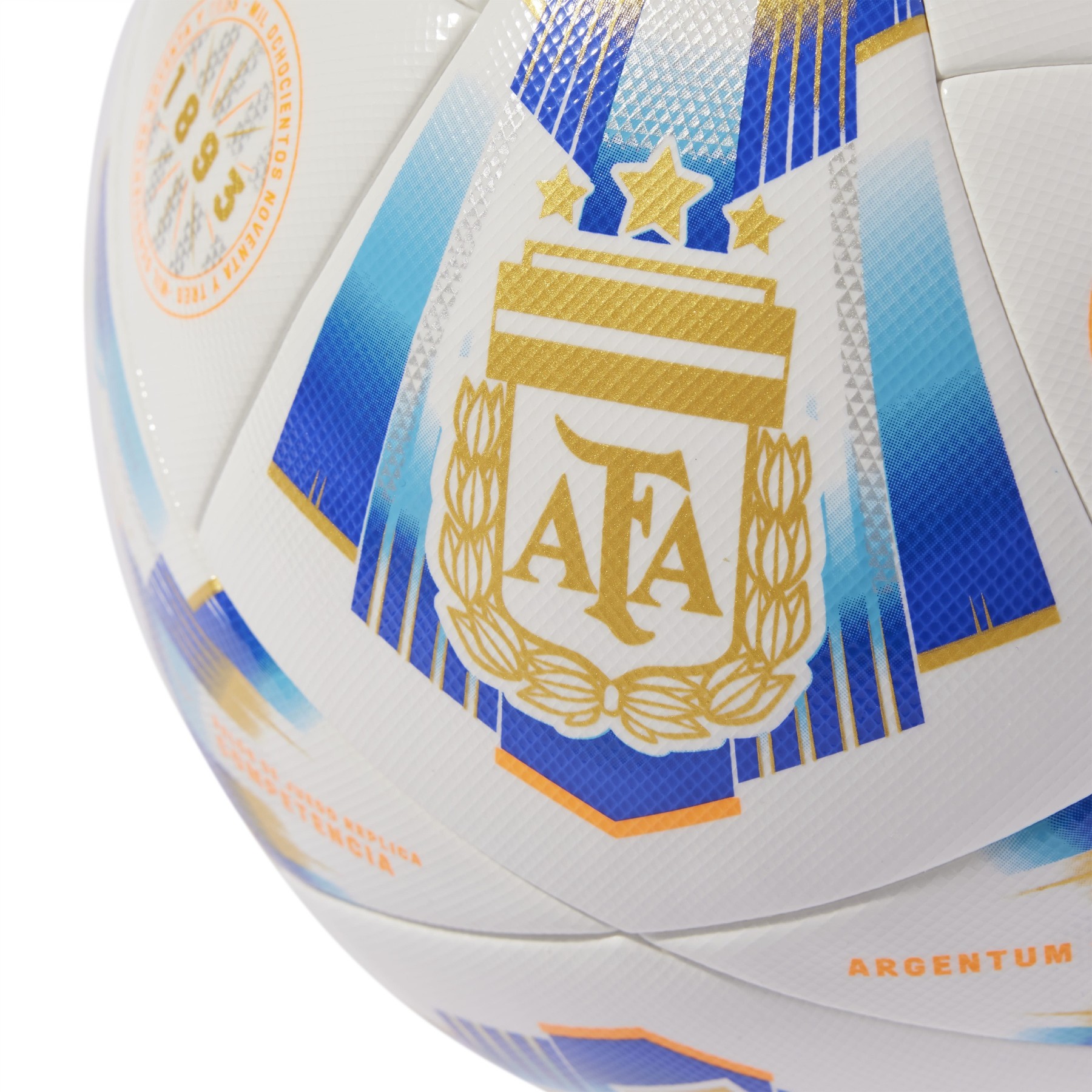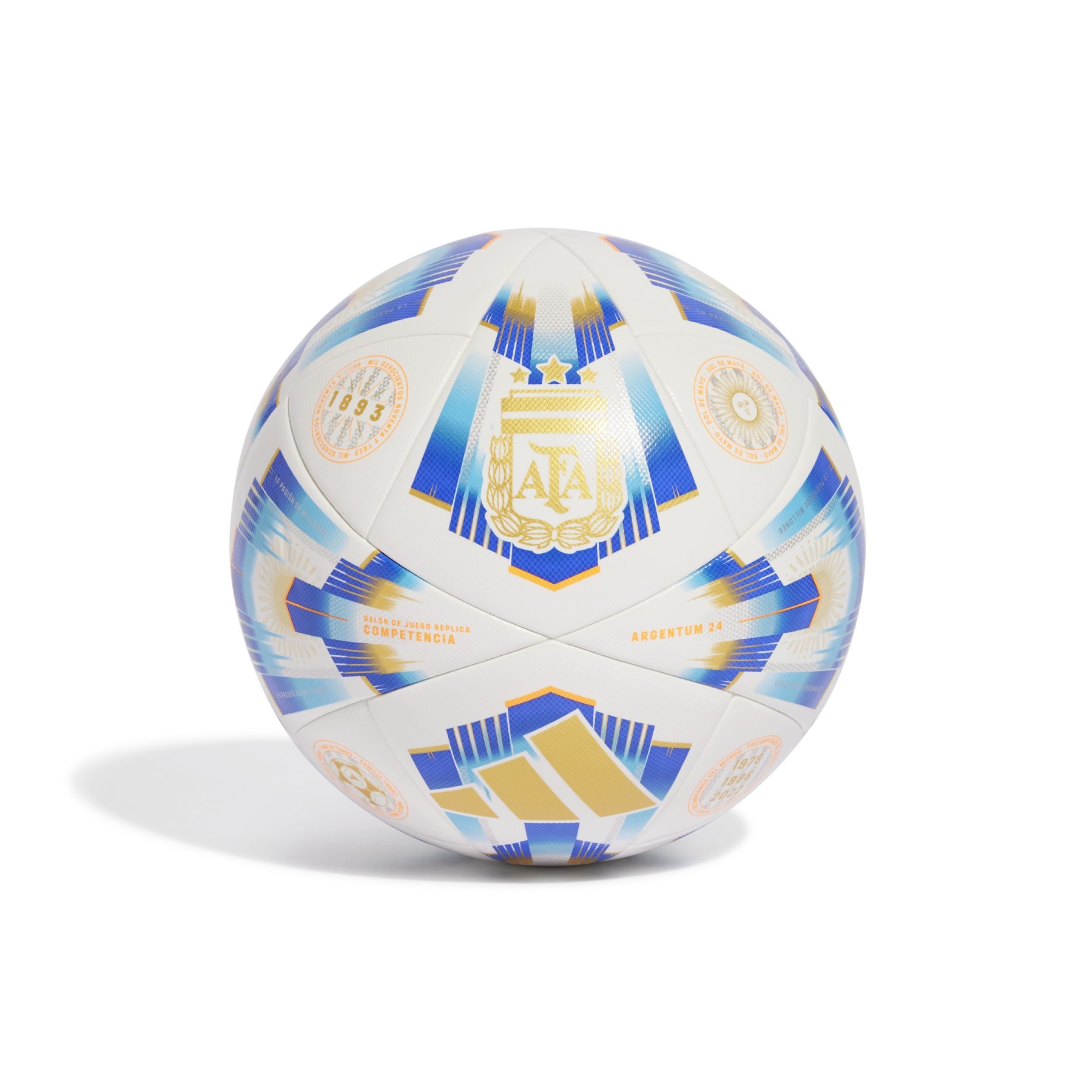 Su diseño de la selección de Argentina incluye el escudo en la zona central en color dorado acompañado de un patrón de líneas por todo el balón en diferentes tonalidades del azul y el dorado.
