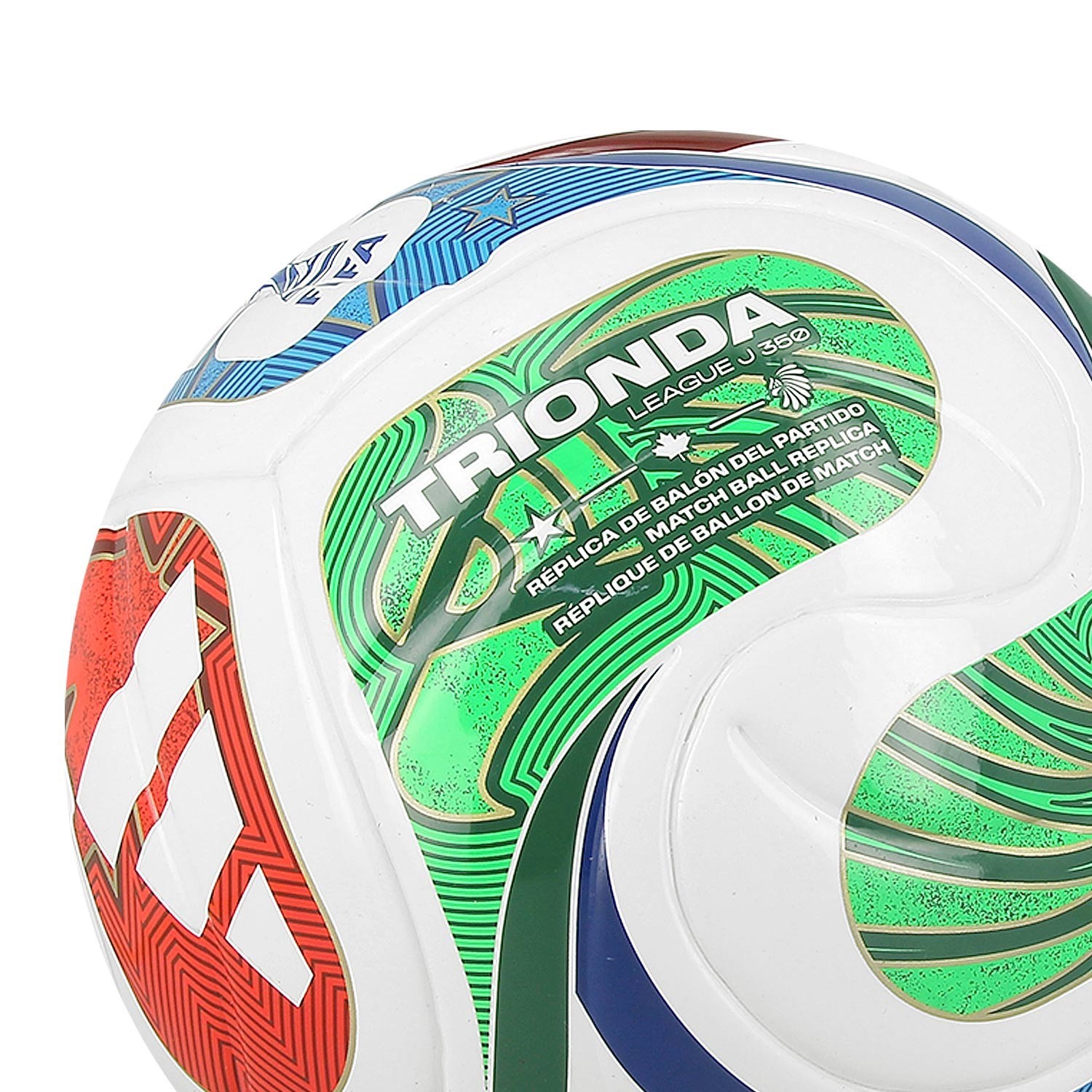 Este balón luce un diseño audaz inspirado en el balón oficial del mundial 2026. Presenta gráficos que evocan las 3 sedes del mundial, capturando la magia de Canadá, Estados Unidos y Mexico . Su superficie predominantemente blanca contrasta con paneles estelares en tonos azul