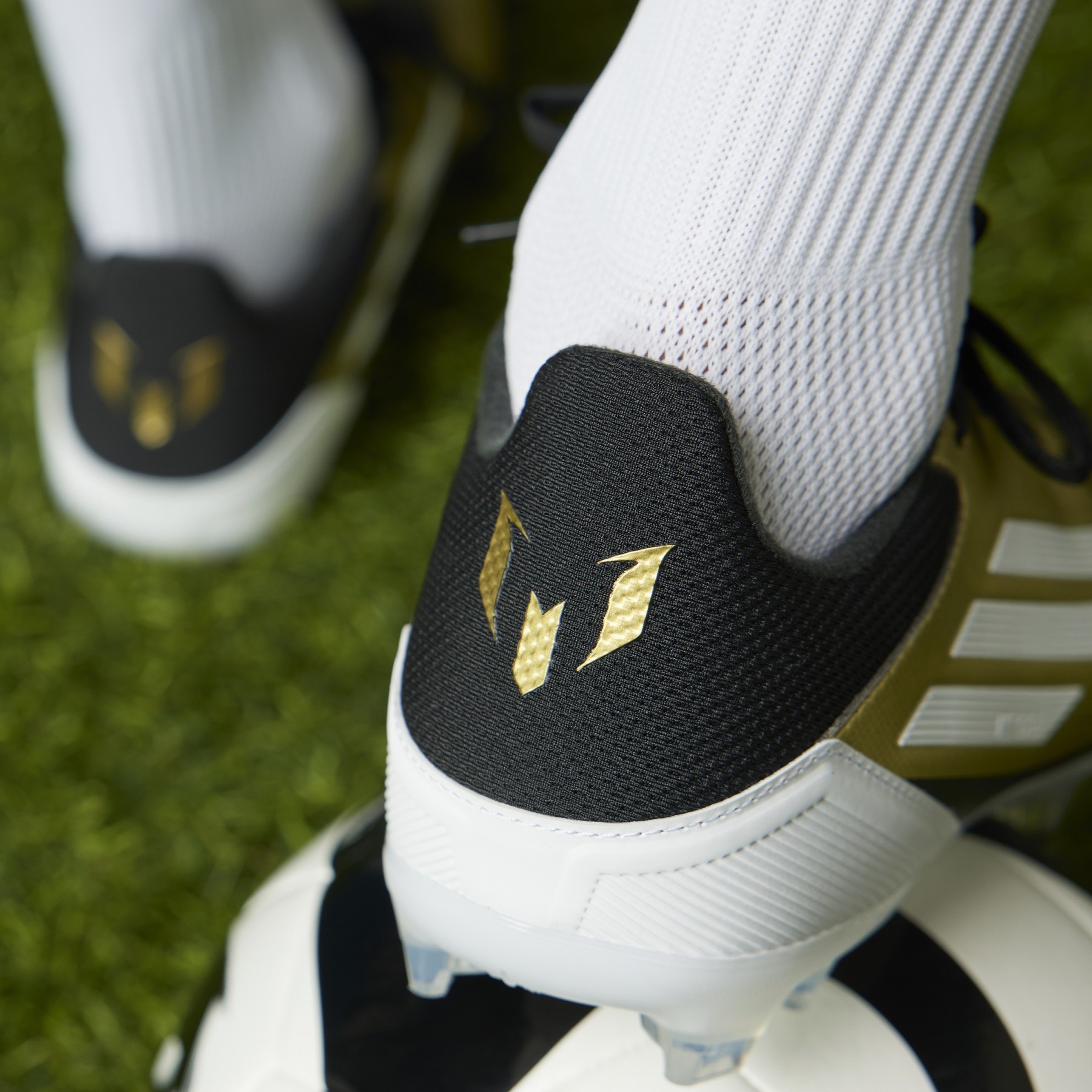 La Adidas F50 están diseñadas para ofrecerte la máxima velocidad dentro de un campo de futbol y su máxima demostración es el astro argentino Leo Messi. Fabricada con FIBERTOUCH en la zona del empeine que se compone de un material muy ligero y moldeable que se adapta perfectamente la zona del pie brindando un excelente ajuste. Su color dorado y negro son un homenaje a las que utilizo en el FC Barcelona en el año 2010 en donde se alzaron con todos los títulos posibles.