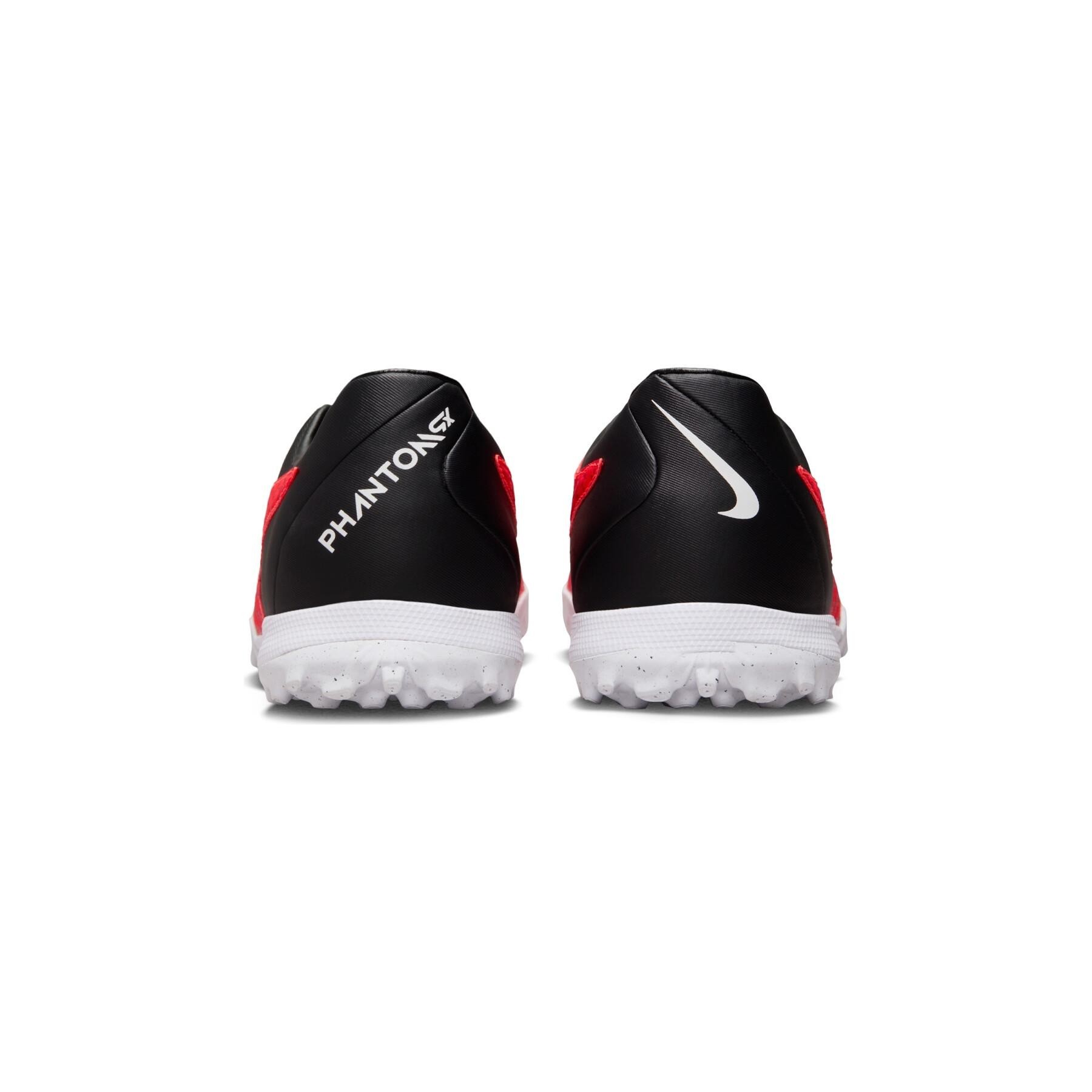 Zapatillas Nike Phantom GX Academy TF, presenta un estilo completamente en negro y rojo con detalles en blanco, está diseñada para moqueta y gracias a la piel sintética con la que está fabricada nos ofrece un gran ajuste al pie. Este modelo GX presenta una carcasa suave de malla por arriba de la bota que brinda un control y una precisión excelente con el balón.