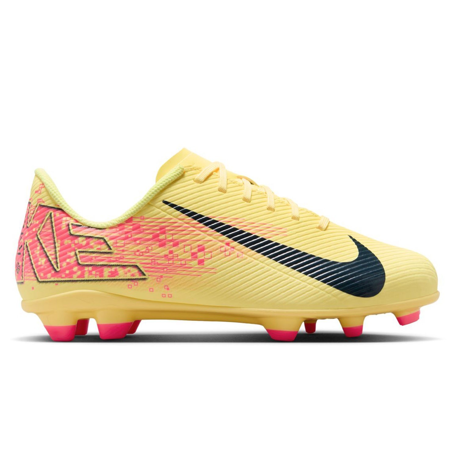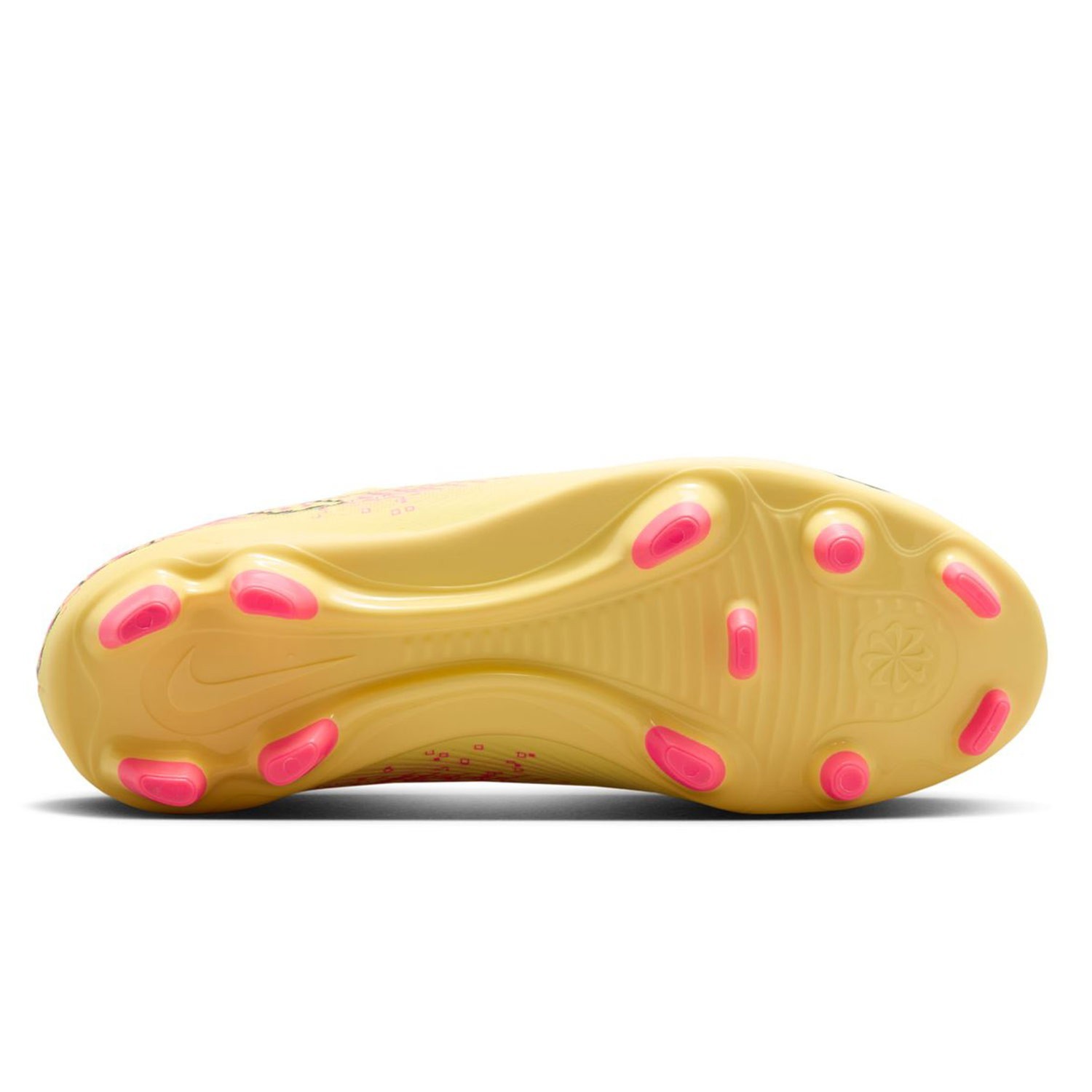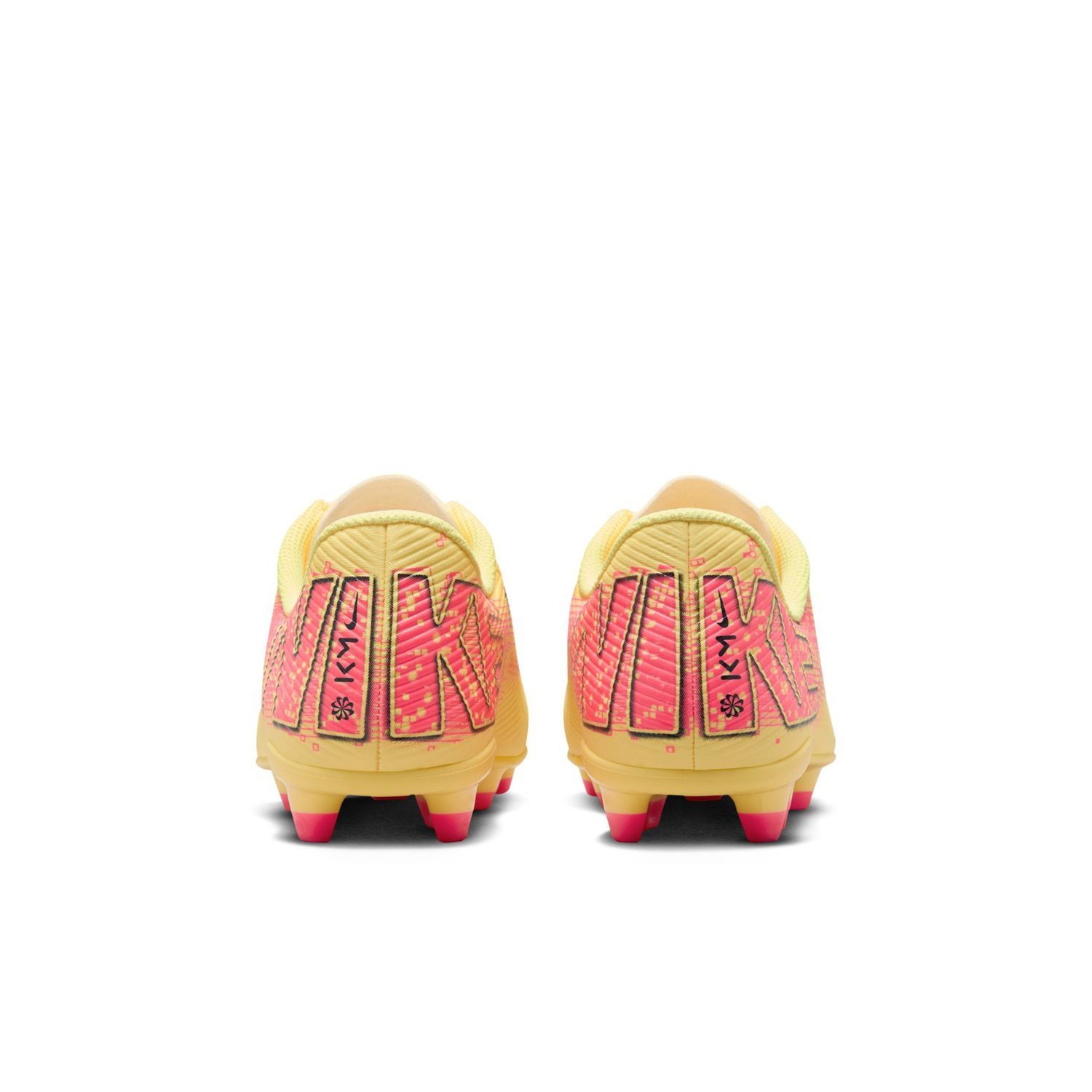 Mercurial inspirada en uno de los mas grandes jugadores dentro del campo de futbol en la actualidad Kylian Mbappe. Atraviesa el campo y que tus rivales solo sueñen con alcanzarte, la tecnología Nike Skin te proporcionara un ajuste adaptado para otorgarte la seguridad para driblar y romper la defensa, sus tacos de terreno mixto aportaran un agarre optimo en todo momento y tipo de terreno con los que podrás realizar regates eléctricos y arrancadas explosivas.