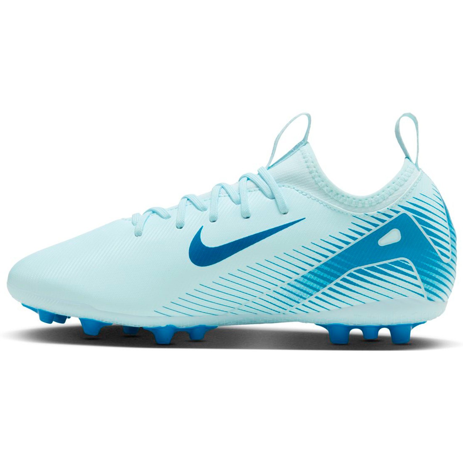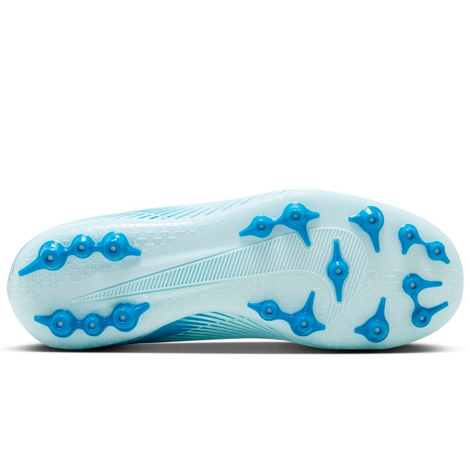 La suela con tacos AG permite una buena tracción en césped sintético favoreciendo las rotaciones para realizar giros veloces y arrancadas potentes para sorprender a todos tus rivales.