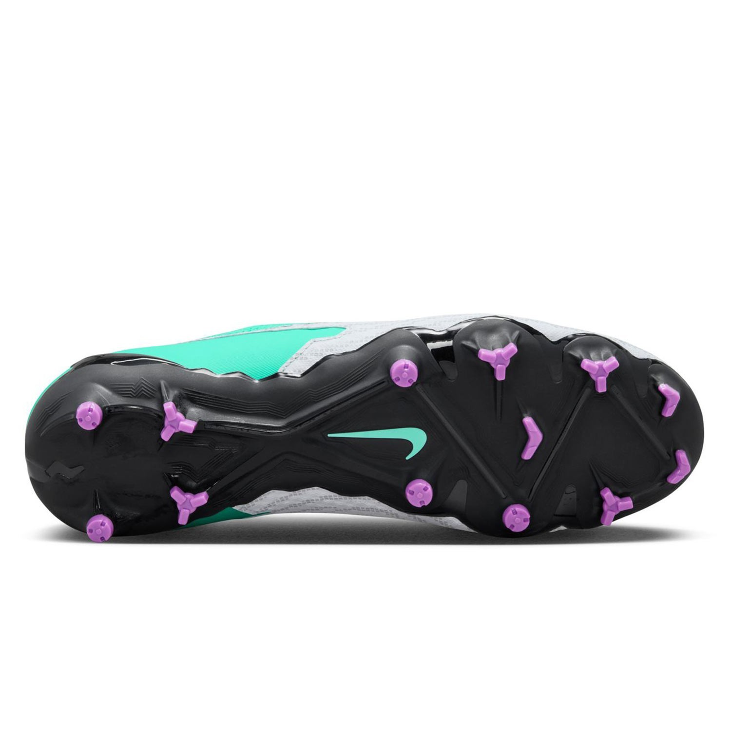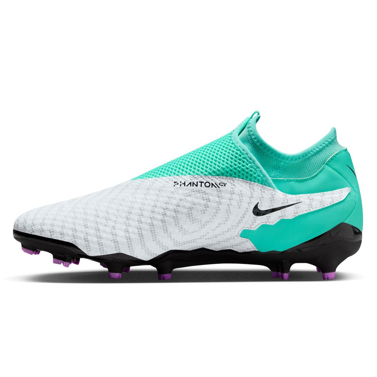 Las Nike Phantom GX Academy DF FG/MG presentan un diseño elegante color blanco/turquesa, la suela combina formas circulares y triangulares para ofrecer una mayor tracción sobre el terreno de juego, la piel sintética con la que esta fabricada ofrece un gran ajuste al pie y un suave golpeo de balón. Este modelo cuenta con los tacos especializados para el césped artificial.