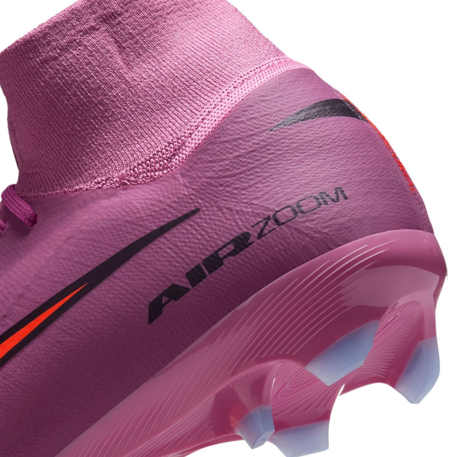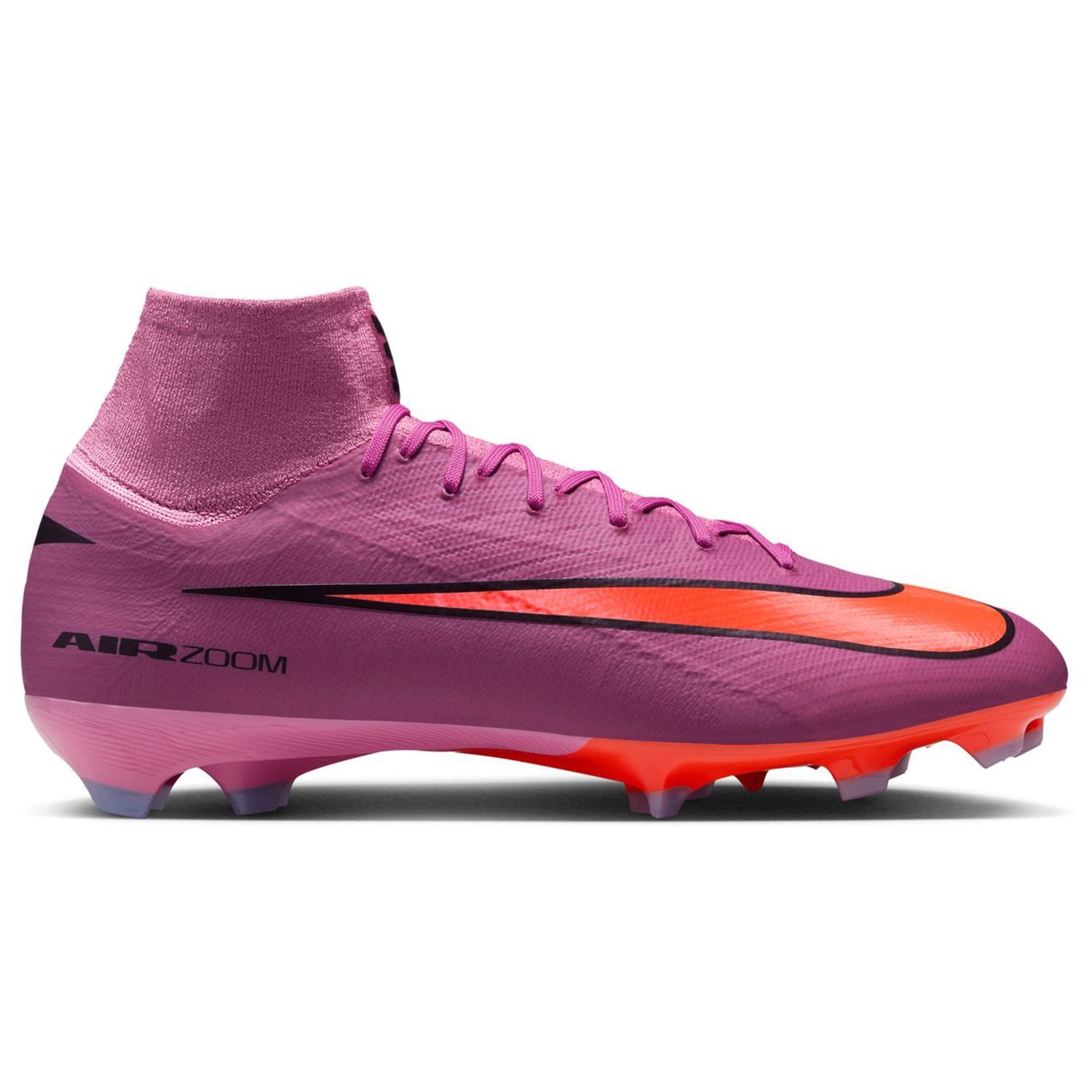Inspirados en la potencia y energía de la velocidad, combina tonos fucsia vibrante con detalles en rojo brillante, blanco y negro. El gran logo “M” en el talón le da un toque agresivo y moderno, y el swoosh frontal curvado completa el look aerodinámico.