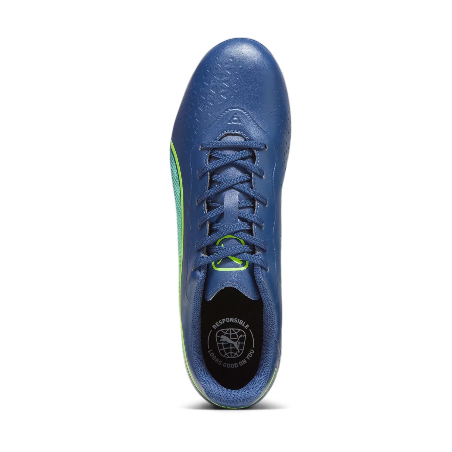 Vuelven las puma King, el clásico de PUMA llega rediseñado, con un estilo más atrevido y materiales sostenibles. Fabricada con la composición K-Better, hecha de un 60% de material reciclado para reducir la huella medioambiental a la vez que mejora la comodidad, la elsticidad y la sensación con el balón, ahora con una suela más ligera con contrafuerte exterior, columna de estabilidad integrada y tacos FG/AG cónicos para controlar los movimientos a la perfección.