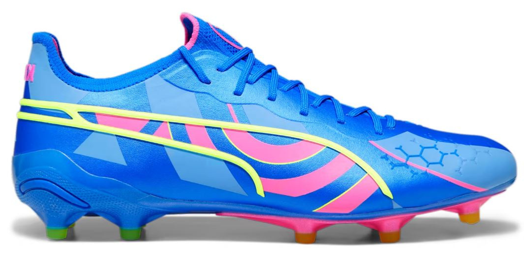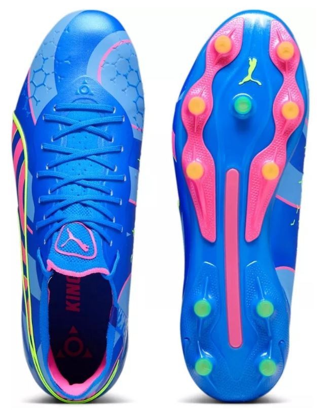 Vuelven las puma King, el clásico de PUMA llega rediseñado, con un estilo más atrevido y materiales sostenibles. Fabricada con la composición K-Better, hecha de un 60% de material reciclado para reducir la huella medioambiental a la vez que mejora la comodidad, la elsticidad y la sensación con el balón, ahora con una suela más ligera con contrafuerte exterior, columna de estabilidad integrada y tacos FG/AG cónicos para controlar los movimientos a la perfección.