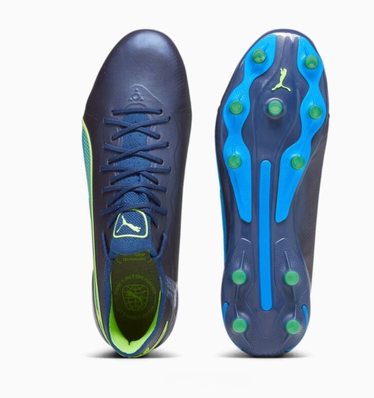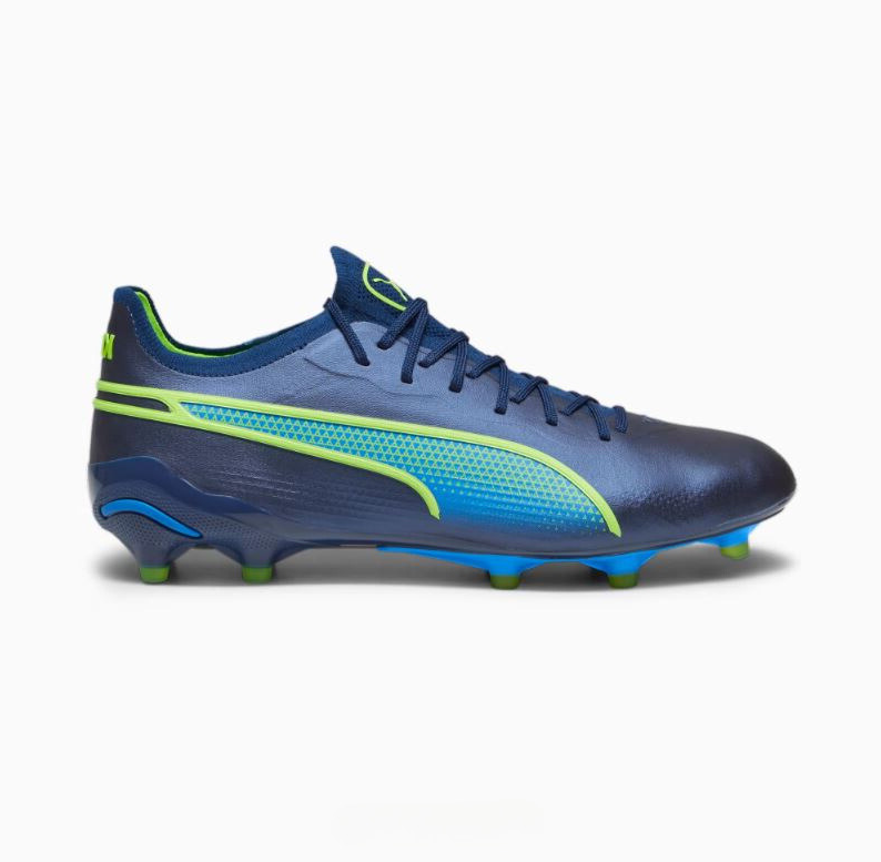 Vuelven las puma King, el clásico de PUMA llega rediseñado, con un estilo más atrevido y materiales sostenibles. Fabricada con la composición K-Better, hecha de un 60% de material reciclado para reducir la huella medioambiental a la vez que mejora la comodidad, la elsticidad y la sensación con el balón, ahora con una suela más ligera con contrafuerte exterior, columna de estabilidad integrada y tacos FG/AG cónicos para controlar los movimientos a la perfección.