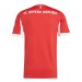 Nueva primera equipación del equipo Bávaro para la temporada 25/26 con su inconfundible color rojo en esta ocasión acompañado del blanco en los detalles, la camiseta presenta un diseño diferente para el club, añadiendo luz con esos detalles blancos. Los detalles de la camiseta se encuentra en color blanco como los que encontraremos en la parte de atrás, el nombre del club "FC Bayern München" en parte superior de la espalda y en la parte del cuello su frase característica "MIA SAN MIA".