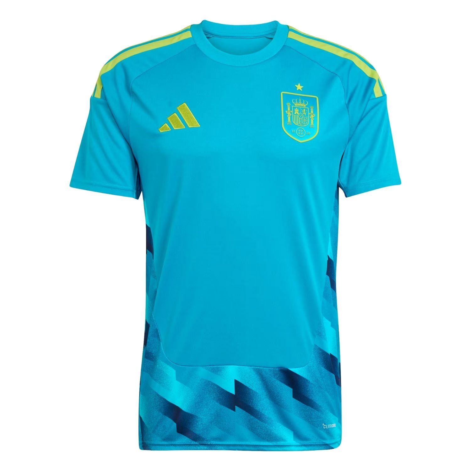 Su diseño icónico en azul intenso acompañado de detalles flúor y azul marino nos recuerdan a la campeona de 2010. El escudo de la RFEF late en el pecho, mientras que el logo de Adidas destaca con un acabado premium.