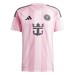 Adidas nos presenta la nueva primera equipación de la camiseta oficial de Inter Miami para la temporada 2025/26, presenta un icónico color rosa en diferentes tonalidades con los detalles del patrocinador y escudos en negro, permitiendo así resaltar el color característico del equipo de Miami.