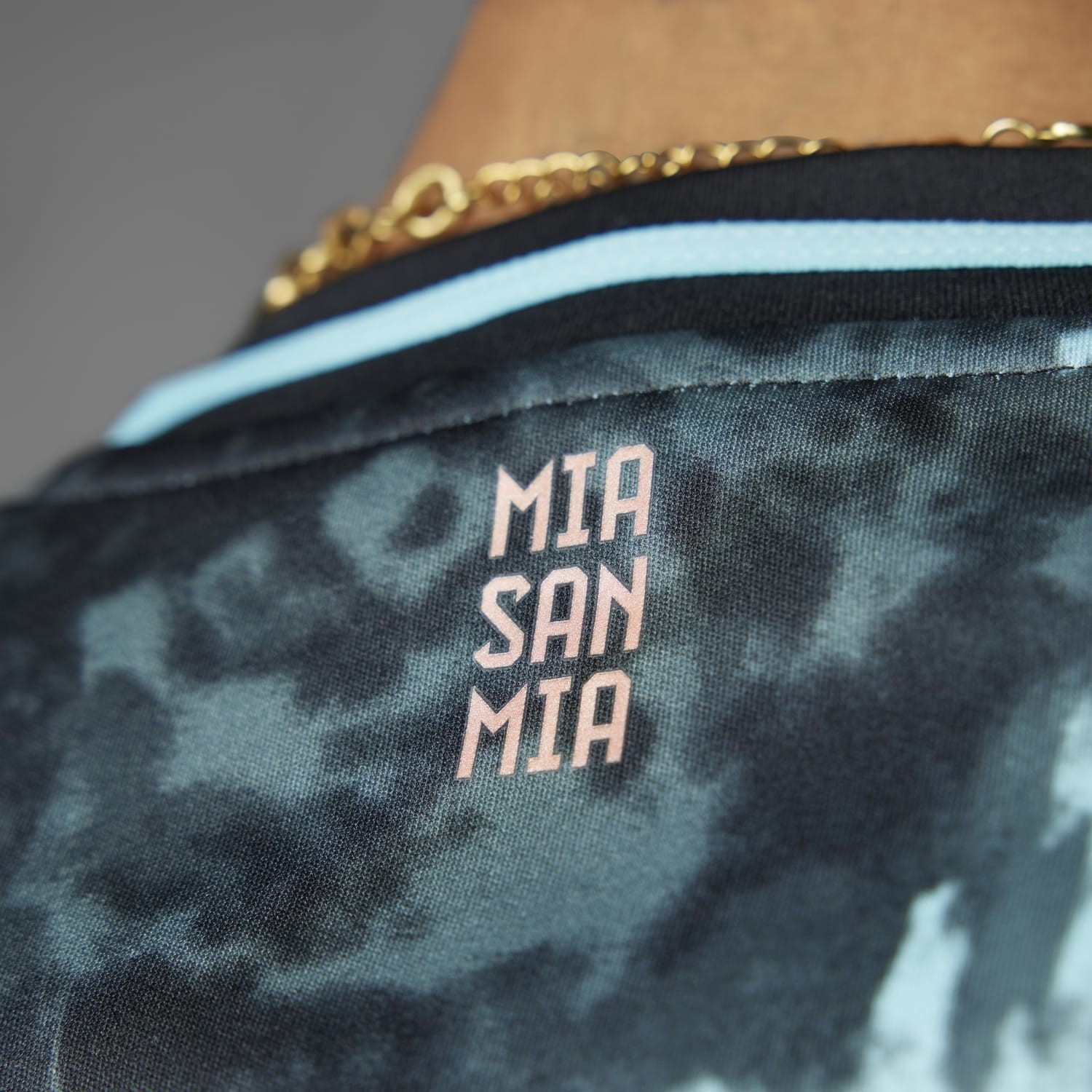 Nueva segunda equipación del equipo Bávaro para la temporada 24/25 con intención de representar la estatua Bavaria y es por ello que imita el color bronce desgastado de este icónico monumento. Los detalles de la camiseta se encuentra en color rojo claro como los que encontraremos en la parte de atrás, el nombre del club "FC Bayern München" en parte superior de la espalda y en la parte del cuello su frase característica "MIA SAN MIA".