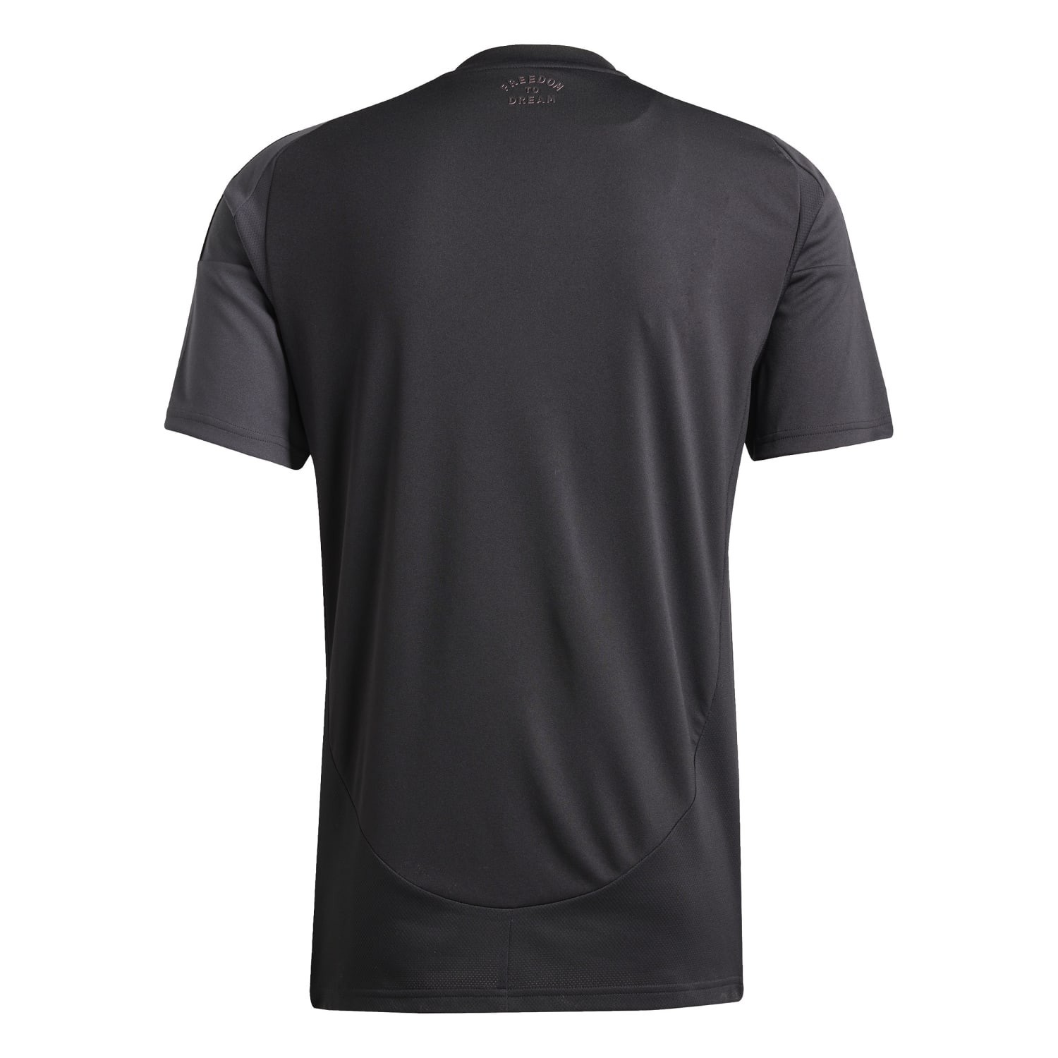 Adidas nos enseña la nueva segunda equipación de la camiseta oficial de Inter Miami para la temporada 2025/26, presenta un elegante color negro en diferentes tonalidades con los detalles del patrocinador y escudos en rosa claro, permitiendo así resaltar el color característico del equipo de Miami.