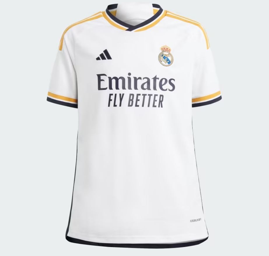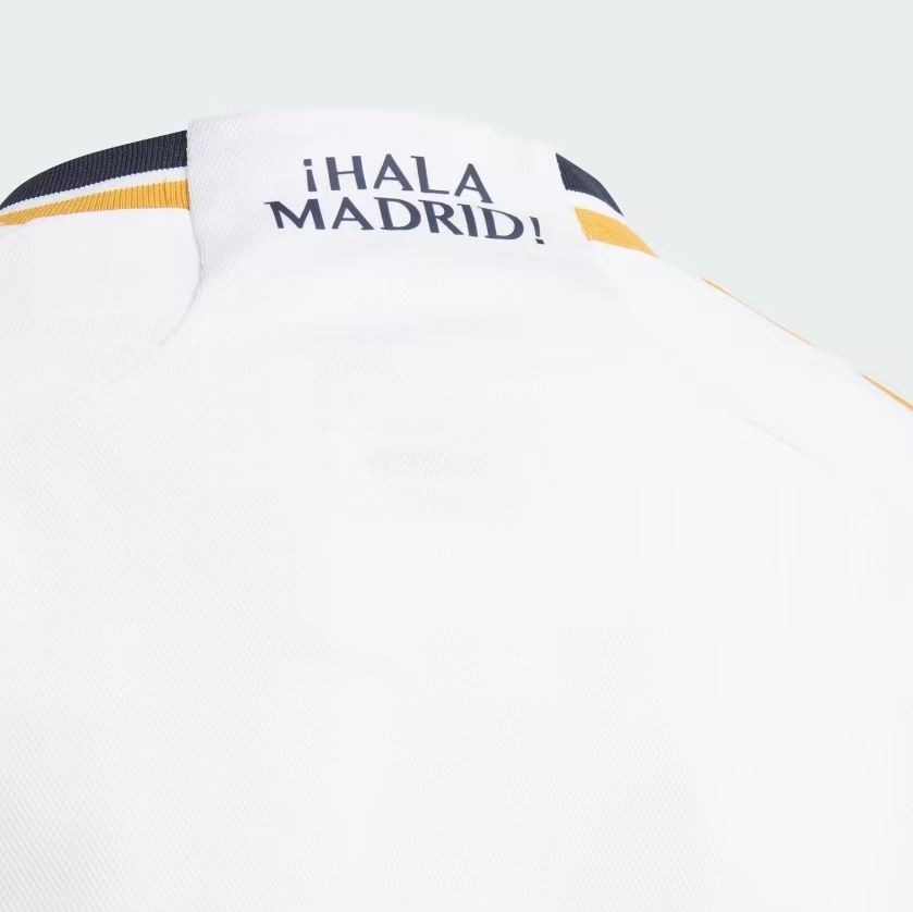 Para el Real Madrid la victoria es solo un pequeño paso para un objetivo aun mayor. Al igual que lo que el club representa, los madridistas llevaran esta camiseta con clase y elegancia. Con un color blanco clásico característico del club, detalles en los bordes en negro con dorado, y la inscripcion ¡Hala Madrid! en la nuca llevaras a tu equipo favorito con orgullo.