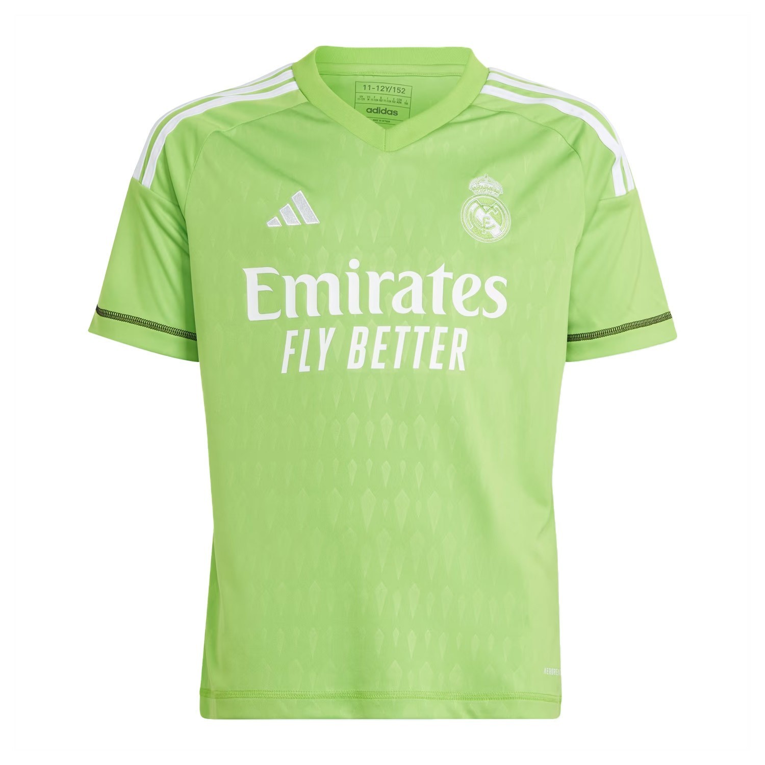 Para el Real Madrid la victoria es solo un pequeño paso para un objetivo aun mayor. Al igual que lo que el club representa, los madridistas llevaran esta camiseta con clase y elegancia. La nueva equipación de portero titular temporada 23/24, diseñada en un llamativo color verde con detalles en blanco para que tus paradas no pasen desapercibidas. Un puesto que lleva una gran responsabilidad, y este conjunto de portero te brindara todas las comodidades para dejar la portería en 0.