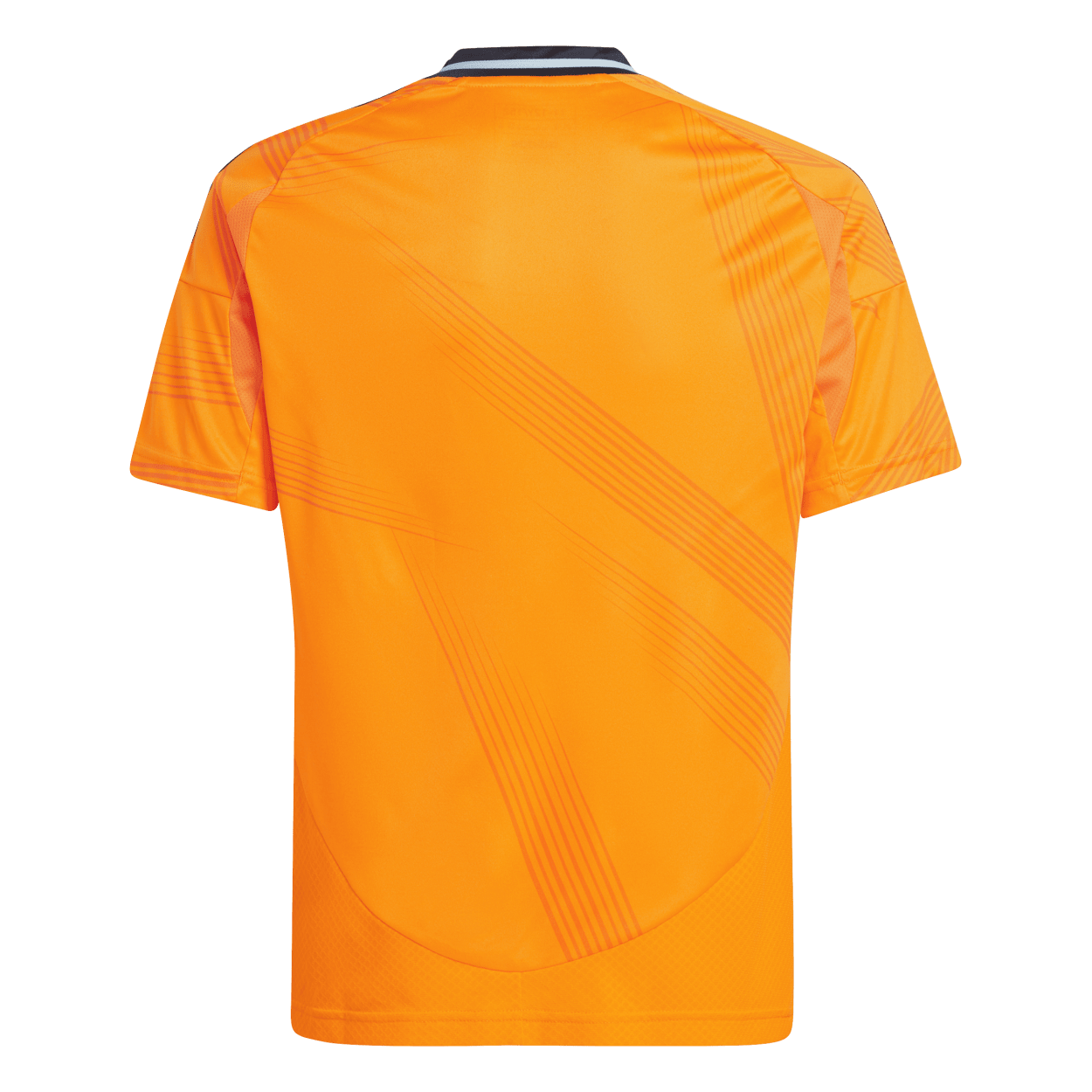 Para el Real Madrid la victoria es solo un pequeño paso para un objetivo aun mayor. Al igual que lo que el club representa, los madridistas llevaran esta camiseta con clase y elegancia. Con un color naranja característico en la victoria de la Décima, con los escudos bordados y los detalles en los bordes de la camiseta en negro.