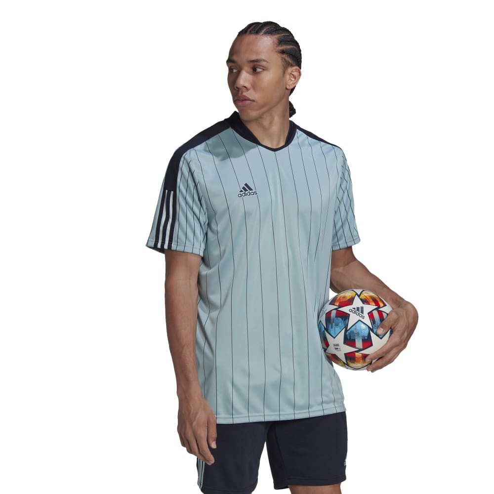 Un look discreto y elegante que rememora el fútbol de los 80. Símbolo universal de sofisticación, la raya diplomática ha sido durante décadas una constante en las camisetas de muchos clubes. Esta camiseta adidas Tiro luce un estampado de rayas finas, con diferente separación en la parte frontal y en la espalda. La tecnología transpirable AEROREADY mantiene la piel seca y aporta una gran comodidad.