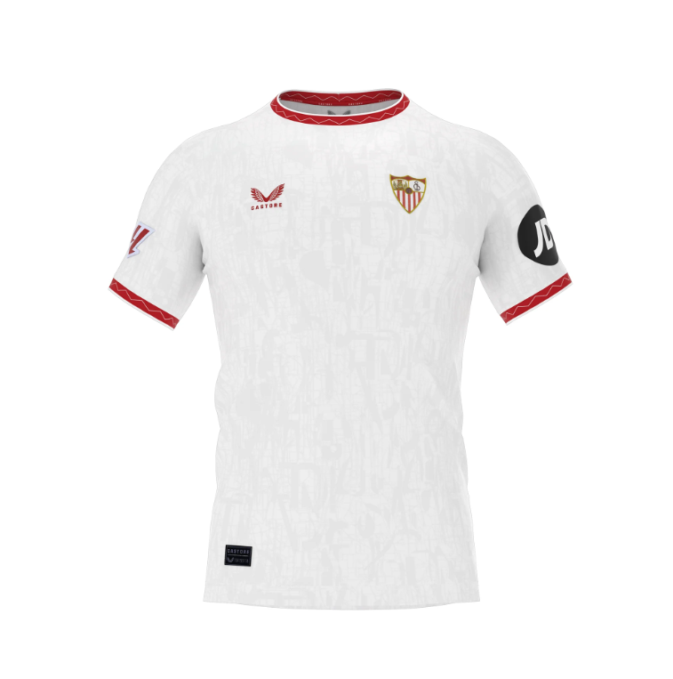 Caracterizados siempre por su afición, el Sevilla presenta su nueva 1a equipación para la temporada 2024/25, en color blanco con detalles en mangas y cuello de color rojo, presenta toques de luz por toda la camiseta para hacer que Sevilla brille como nunca antes lo habia hecho.