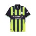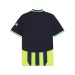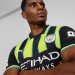 Nueva camiseta Puma diseñada para el Manchester City temporada 2024-25. Con un diseño diferente con un fondo amarillo flúor y franjas verticales negras, el club cambia totalmente su imagen para la segunda equipación.