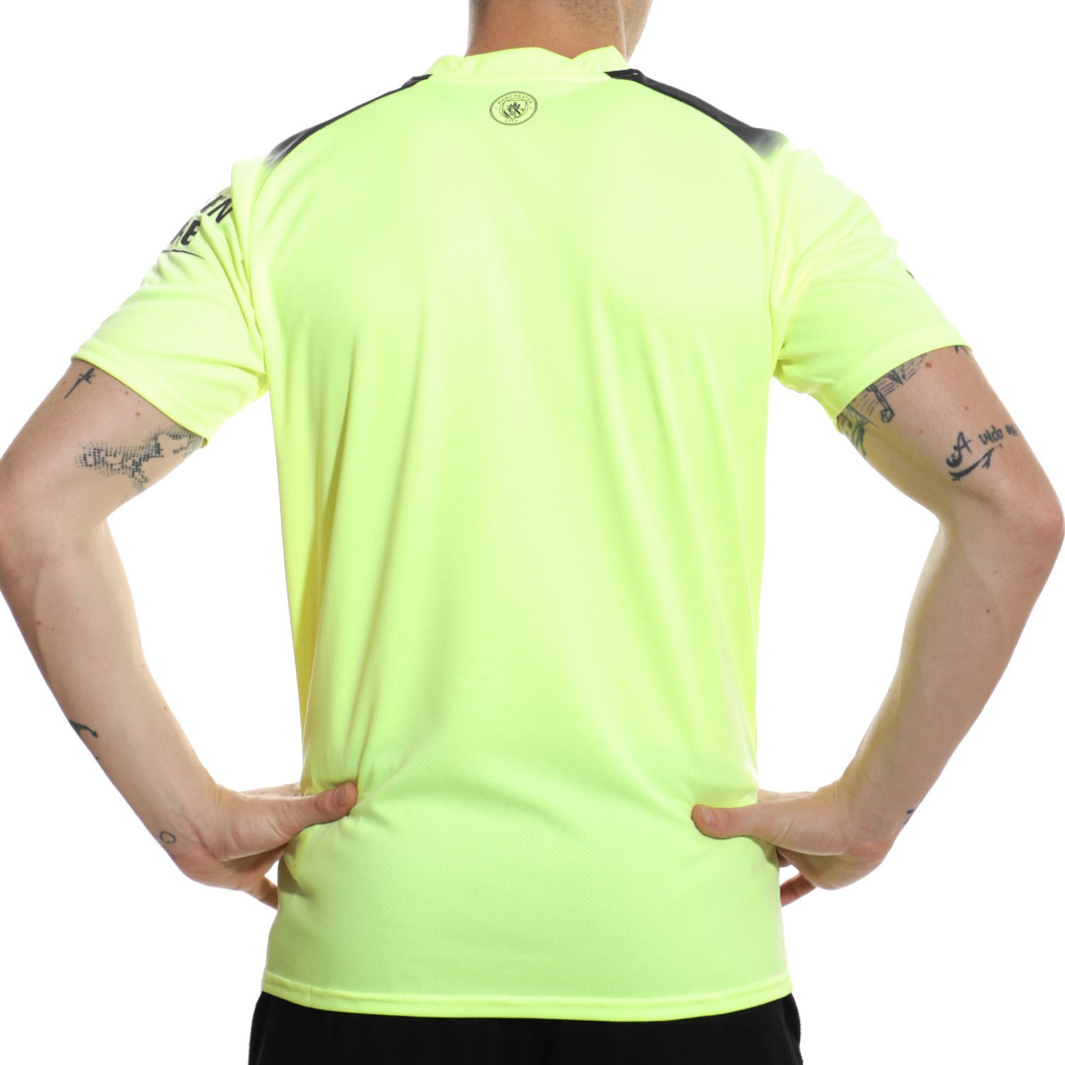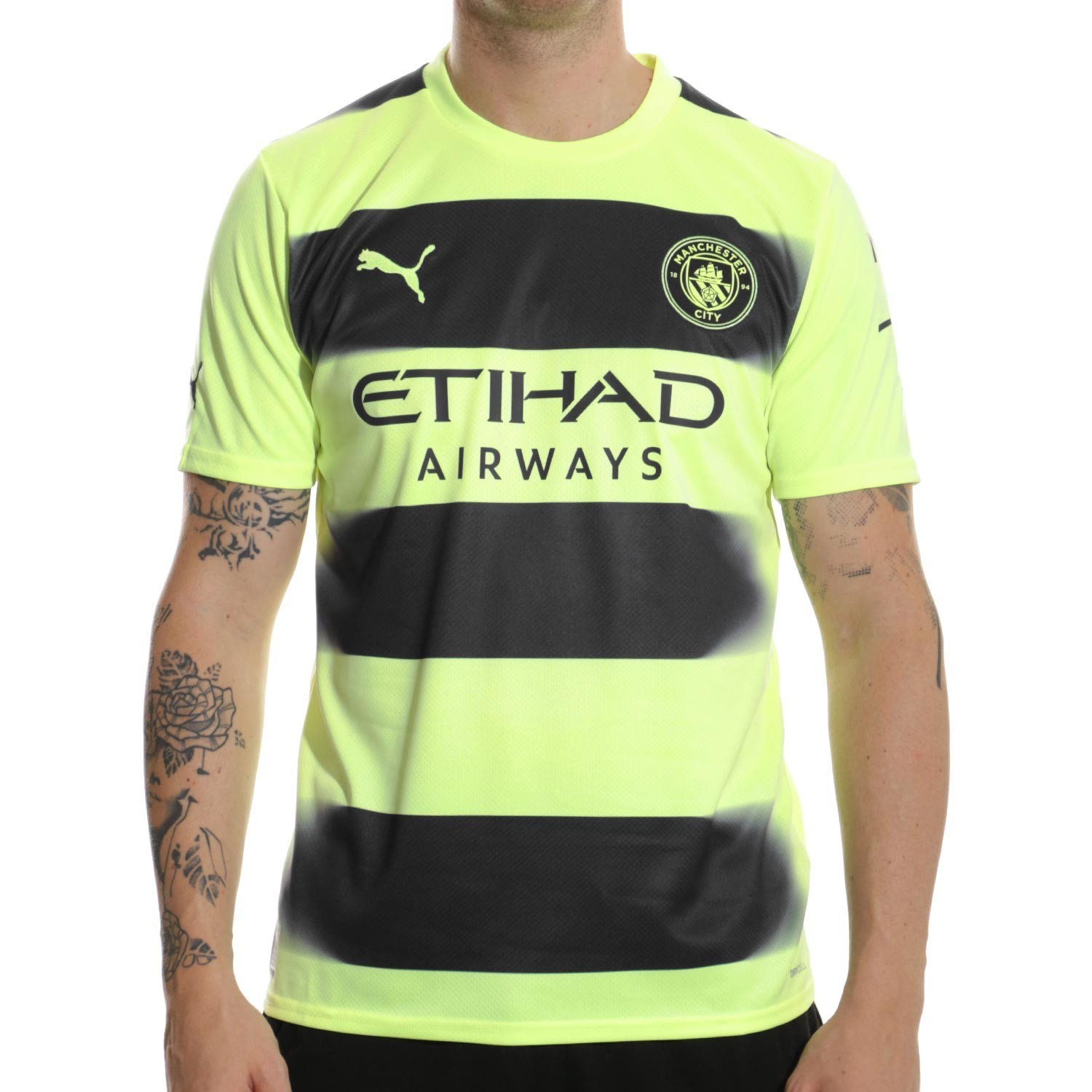 Tercera equipación del Manchester City FC 2022/2023 celebra la creatividad del manchester con colores brillantes y detalles audaces inspirados en el arte callejero. El diseño rinde homenaje a la abeja obrera, un ícono de Manchester que se abrió camino desde el escudo de armas de la ciudad hasta las fachadas, mosaicos y, más recientemente, alucinantes piezas de arte callejero que se encuentran en las calles de Manchester. El efecto pintura en aerosol en los aros completa la declaración.
