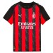 Nueva camiseta del AC Milán para la temporada 2025/2026, diseño que deja atrás las franjas verticales que tanto lo caracterizan para añadir franjas horizontales para crear un diseño clásico manteniendo los colores y diseño del club.