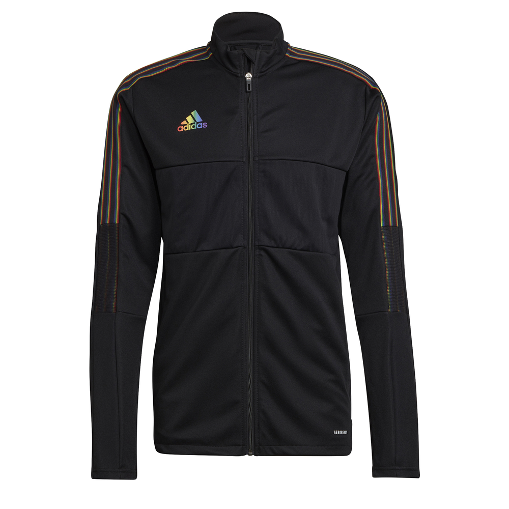 El orgullo es algo más que fiestas y desfiles. Es cómo vives el día a día. Esta cómoda chaqueta de fútbol adidas luce detalles con los colores del arcoíris para rendir homenaje al Orgullo. El tejido transpirable AEROREADY mantiene la piel seca sin importar lo que te depare el día.