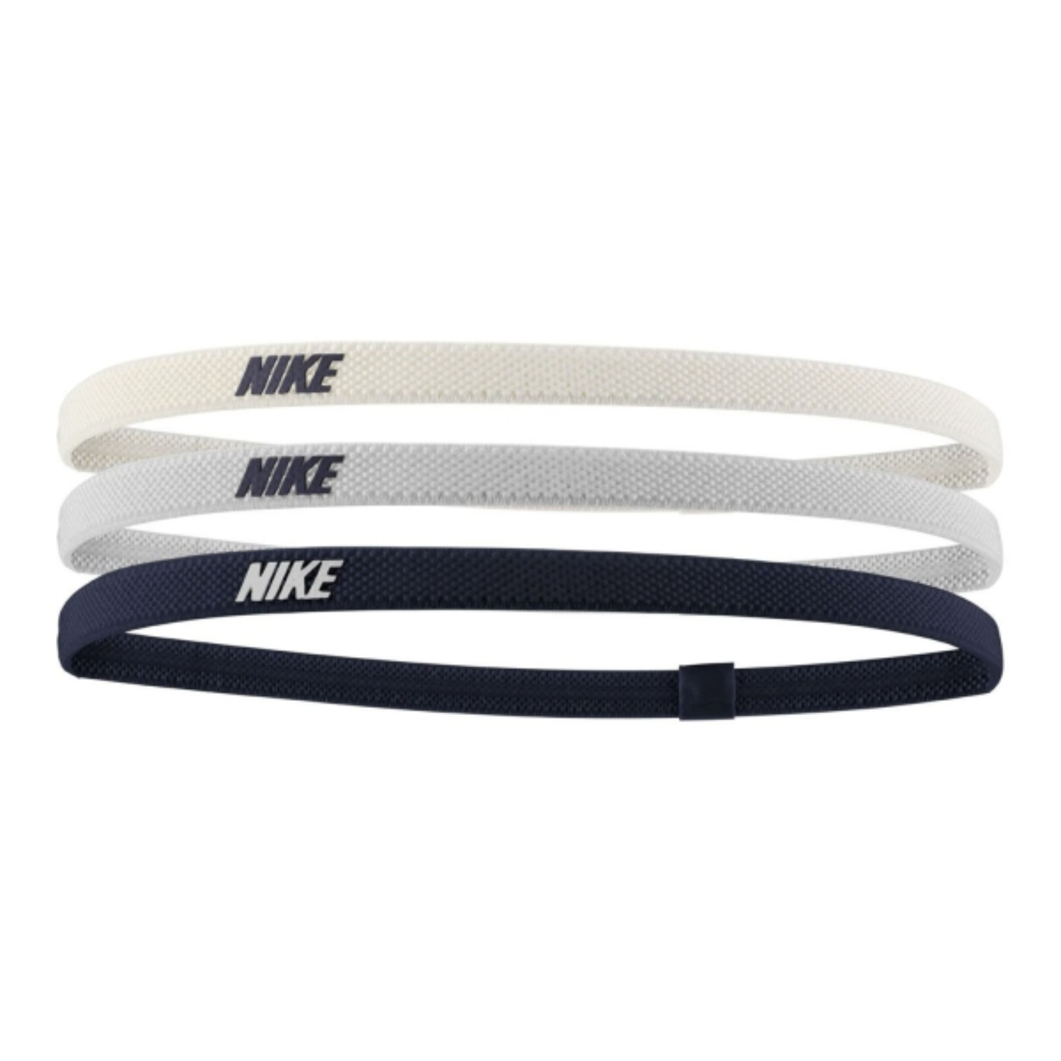 Cintas para el pelo Nike HEADBANDS 2.0 con un grosor y tamaño ideal para sostener el cabello y no incomodar. Pack que incluye 3 unidades de color Marino, Gris y Beige.