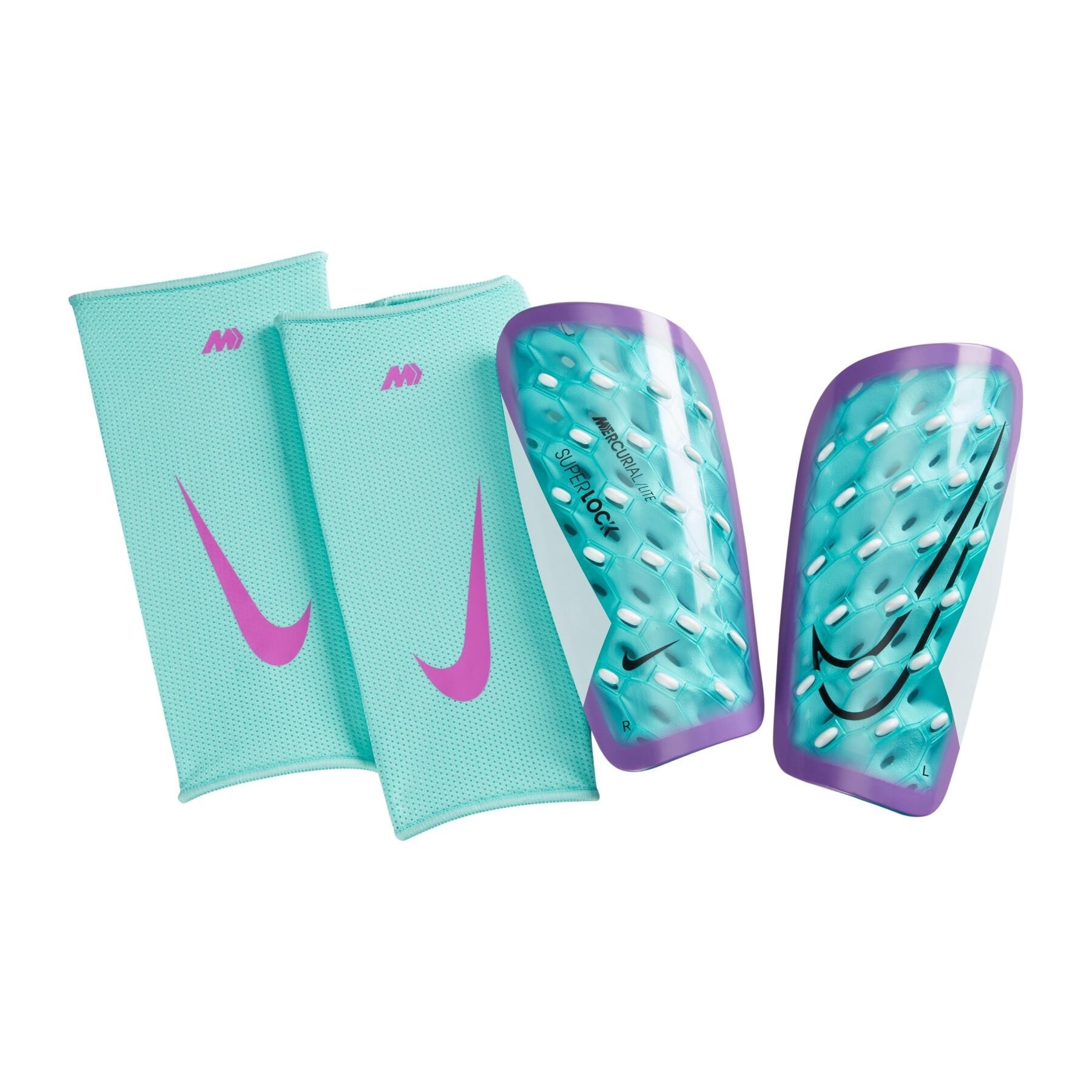 Las espinilleras Nike Superlock están hechas en la parte posterior con espuma moldeada que ofrece un ajuste que se adapta a la pierna del jugador, al mismo tiempo que las capas SuperLock se ajustan a las fibras de los calcetines para mantenerlas en su sitio durante todo el partido.