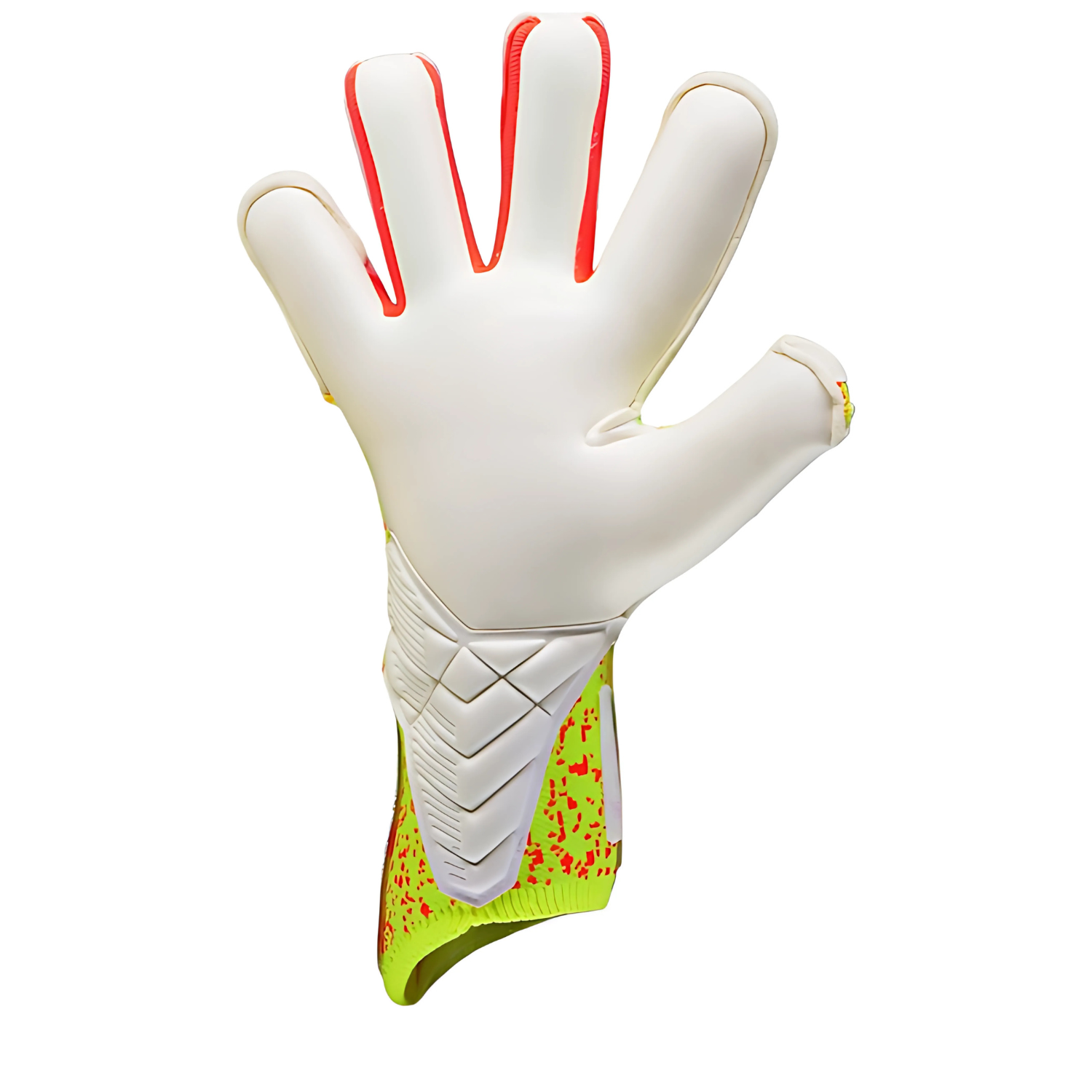 En el dorso y la muñeca incorpora látex para proteger al portero en los despejes y los disparos mas potentes.