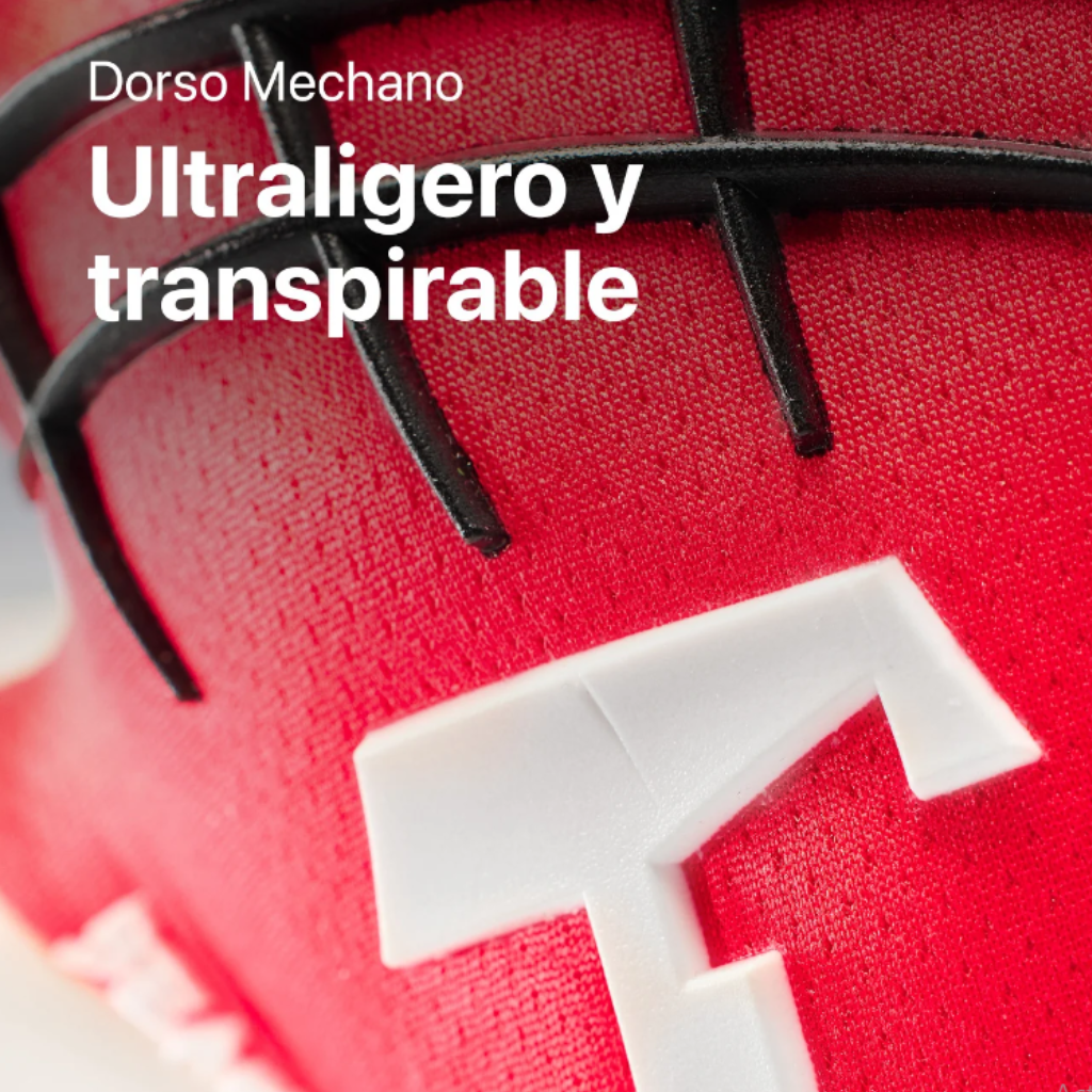 Los porteros han evolucionado y estos guantes están a la altura del desafío, los T1TAN Red Beast 3.0 ofrecen un estilo agresivo y un rendimiento extremo. Su dorso Mechano 2.0 se compone de un material ultra ligero y adaptable permitiendo un ajuste sin igual a toda la mano, facilita el paso del aire y favorece la transpirabilidad del guante. La zona de golpeo esta compuesta por unas tiras de silicona colocadas estratégicamente para aportar un despeje potente y preciso.