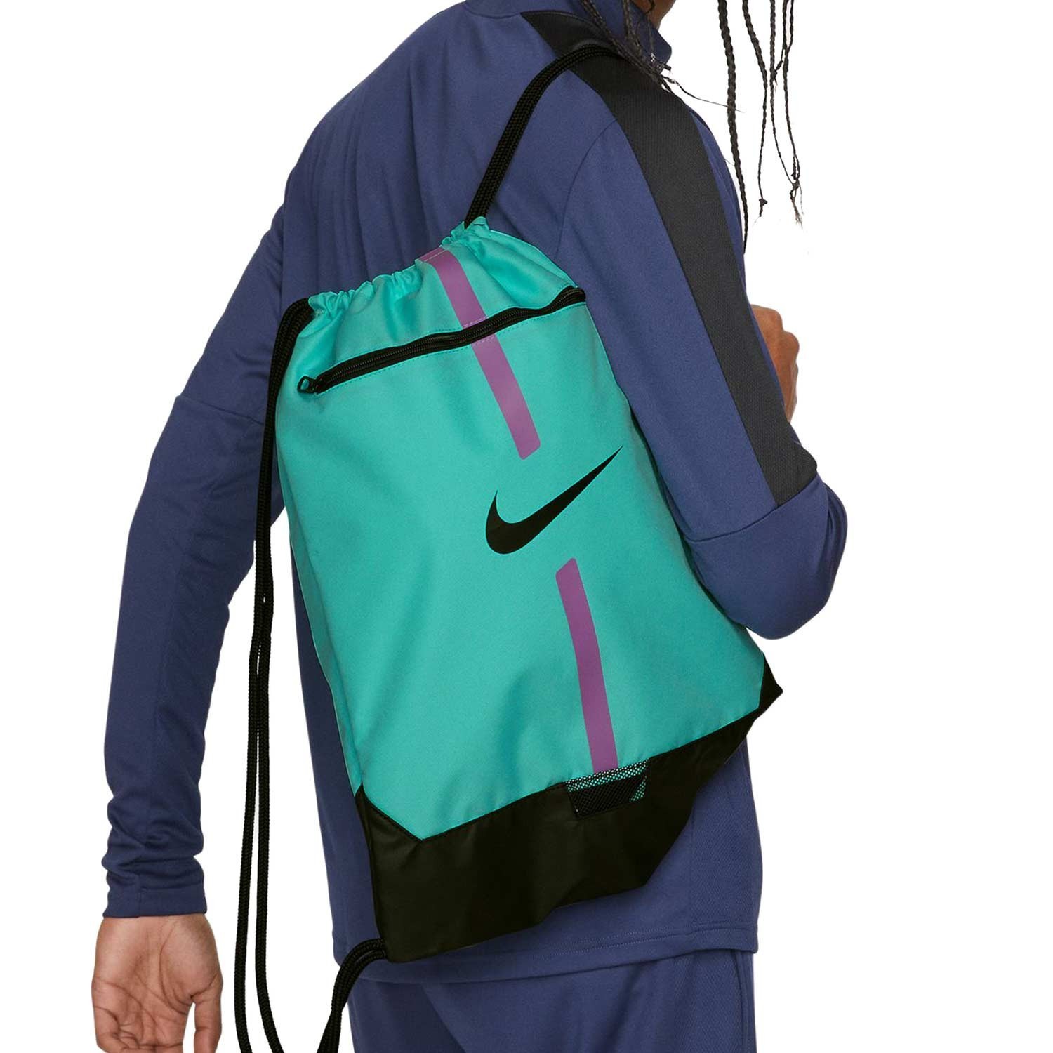 Mochila con dos cintas y con pequeño bolsillo frontal, posee una obertura en la zona inferior con malla permitiendo la circulación del aire. Tamaño ideal para llevar tus botas y elementos de partido o llevar todos tus accesorios de gimnasio.