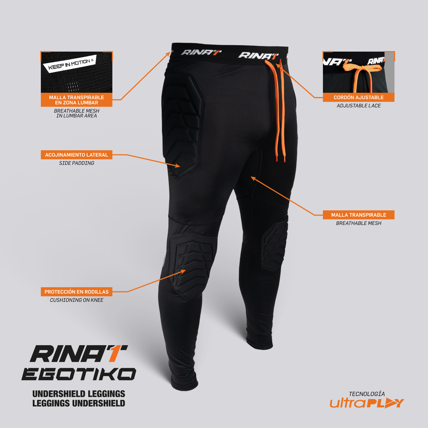 Nuevo modelo de Rinat para sus mallas de portero, fabricado con materiales altamente flexibles y resistentes hacen la malla ideal para jugar en césped artificial, cintura elástica y cordón para lograr un ajuste perfecto y cómodo. Incorpora protecciones de espuma EVA de 7.5mm en caderas y rodillas para proteger al portero.