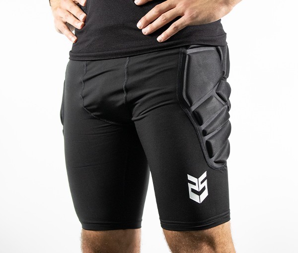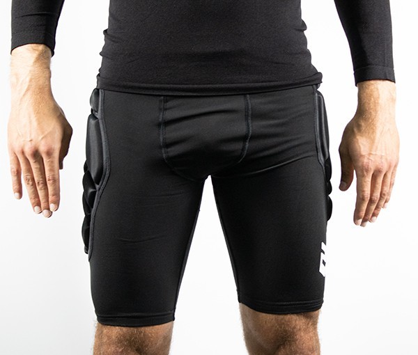 Malla de portero de tejido técnico transpirable 100% poliester de cintura elástico con ajuste de cordón. Protecciones laterales de gran grosor para mitigar el impacto de las voladas laterales durante entrenamientos o partidos.
