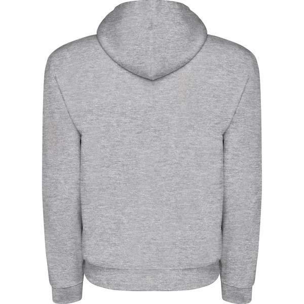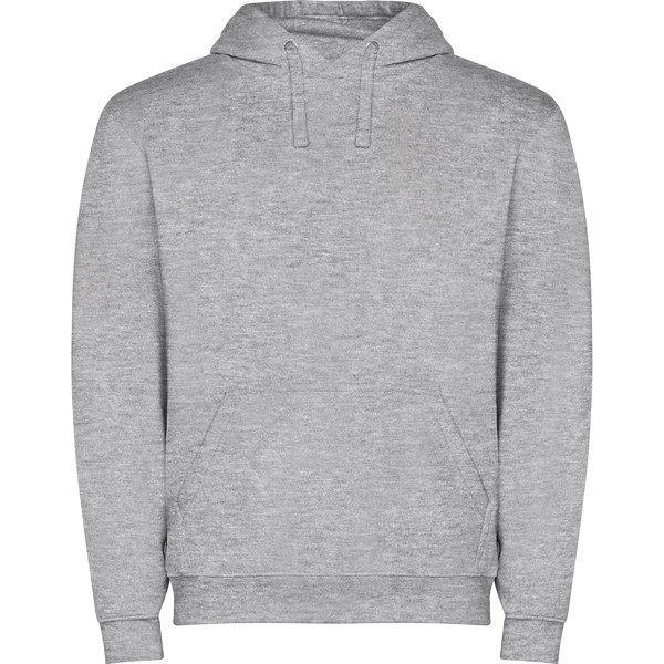 Sudadera capucha con bolsillo canguro y cordón plano ajustable. Puños y cinturilla con punto canalé 1x1 con elastano.