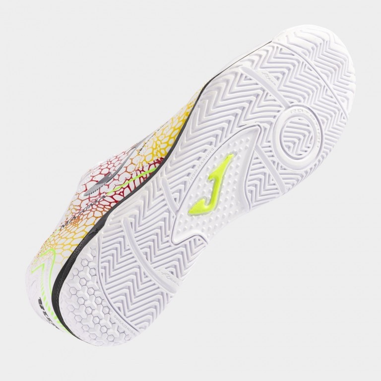 Zapatillas de fútbol sala concebidas para otorgar un optimo nivel de agarre y resistencia, diseñadas con materiales sintéticos ligeros y resistentes a la abrasión ocasionada por el suelo.