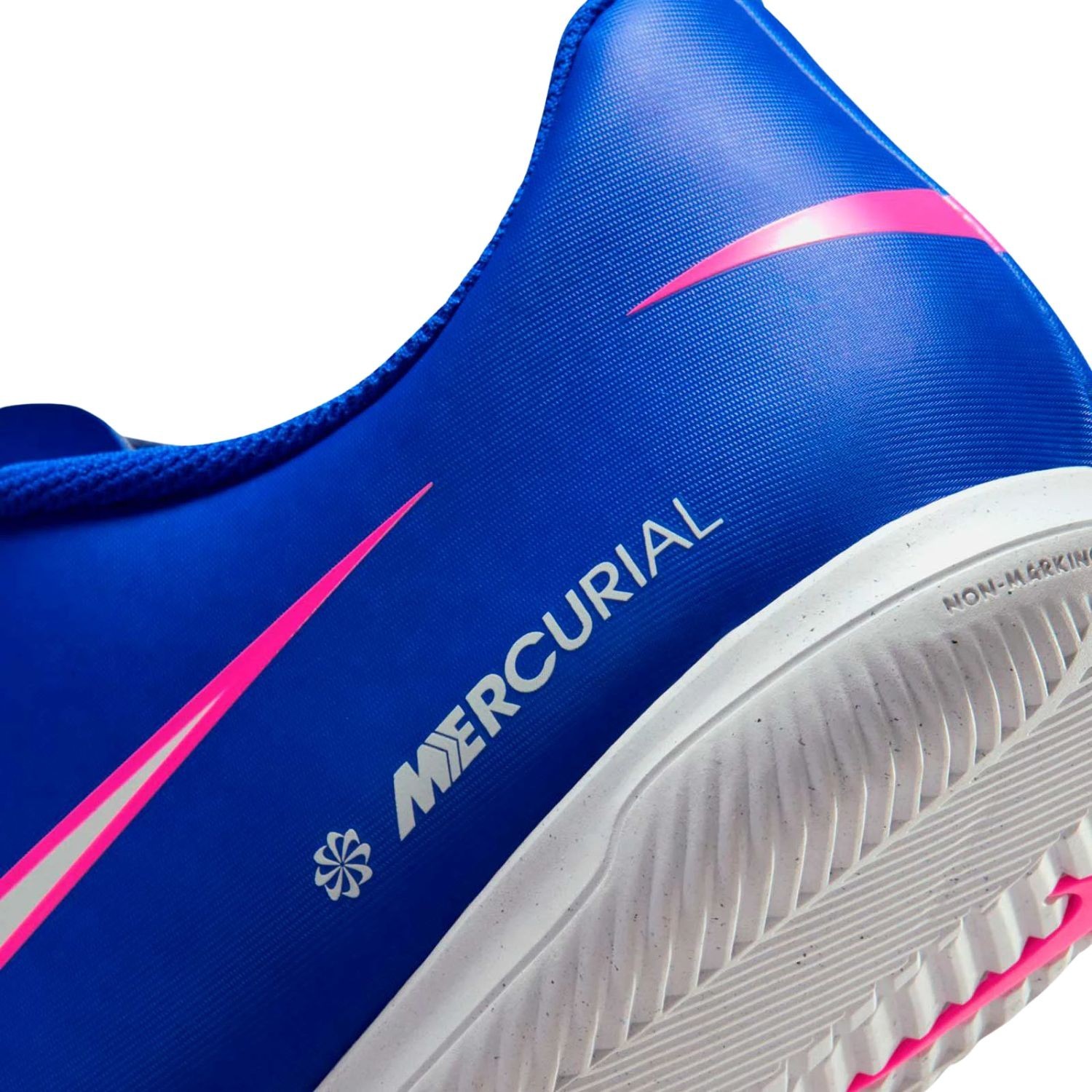 Lleva tu velocidad también al fútbol de sala con las Mercurial Vapor 16 Club. Diseñadas para responder en superficies interiores, ofrecen un ajuste cómodo y seguro que envuelve el pie, garantizando estabilidad en cada cambio de ritmo. Su construcción ligera favorece la agilidad, mientras que la suela de goma optimizada proporciona tracción confiable en canchas indoor y superficies planas.
